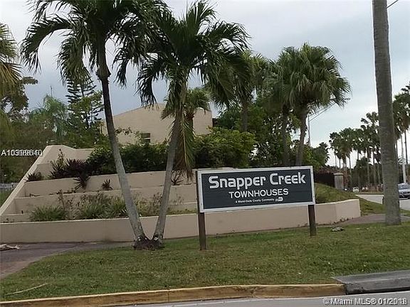Snapper Creek Townhouse in Gated Community! Excellent location, schools, low maintenance, financing welcome. Incredible price. This two story 3 bedroom 2 bath starter home has lots of potential. Guard on site at entrance, security patrol walled in community. Amenities include: the recreational center club house, adult and children's swimming pools, children's swings and playground area, tennis courts/basketball court. Tenant occupied: showing by appointment only, please call listing agent.
