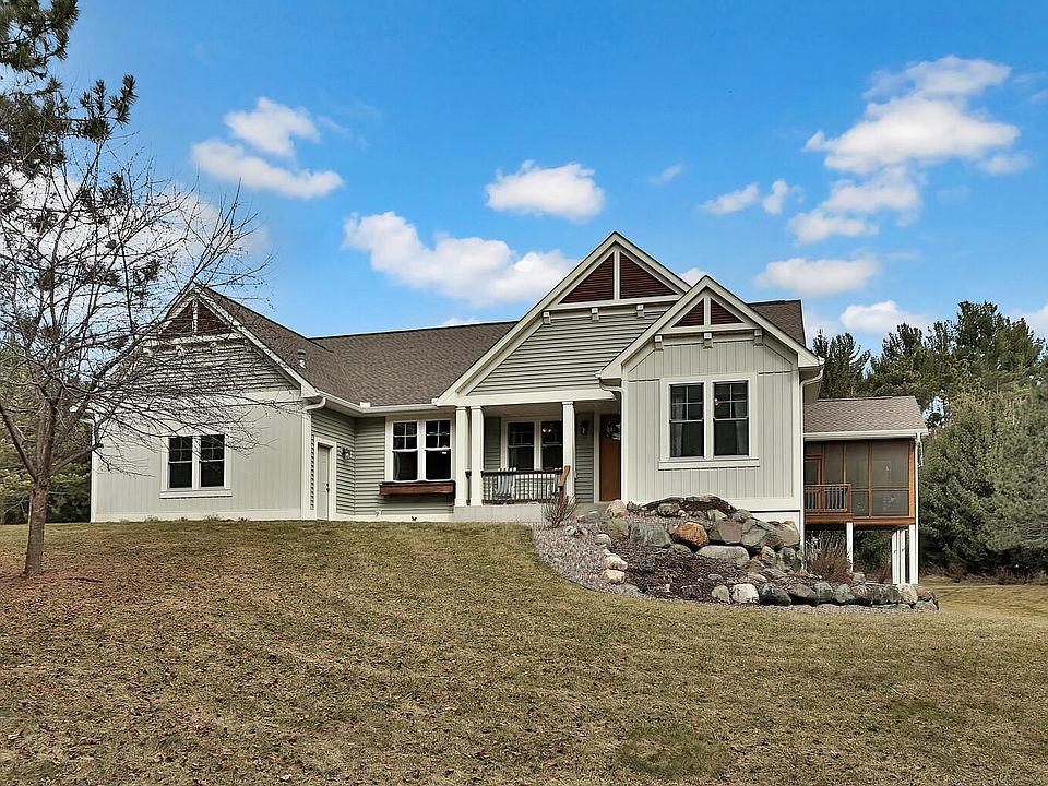 Like new condition, Hartman Built home in sought after Pine Cliff neighborhood. This 4 BR/4 Bth 3000+ SF walkout rambler is tucked away in a grove of Pines near the end of a cul de sac for extreme privacy. Special features of this home include in-floor heating in the walkout basement, oversized 3-car heated and insulated garage along with an additional 30 x 30 heated and insulated detached garage, both with 8-foot doors. Roof 2018, water softener and Reverse osmosis for drinking water, Maple Trim and cabinetry, Cambria countertops, Hickory wood floors on main level, and a porch for added living space. $100 annual fee for park maintenance gets you access to the Apple River for canoeing/kayaking/fishing or picnicking. Park access is first right out the driveway and first left, next to 1974 62nd St.
