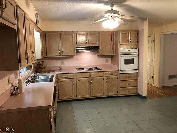 Marvelous ranch home Northwest of downtown Newnan. Home is well-built with spacious Kitchen and cozy Family Room. Hardwood floors throughout living area and bedrooms while the Kitchen & Baths are tiled. The large Kitchen has a dining area and adjoins the Laundry Room with plenty of room for pantry items. A curved driveway leads to the home with a single car garage and parking pad for additional parking. The home is elevated above the road for privacy. Central heat & air as well as wall mounted space heaters in case of power outage. The rear deck is covered and the backyard is fenced. Furnishings negotiable. Call agent to schedule your private showing.