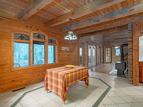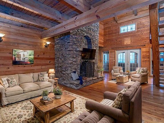 Charming 2-Story Cabin on 5.02 Wooded Acres!! This stunning 3-bedroom, 3.5-bathroom cabin offers a spacious 3227 sq ft of living space, perfect for those seeking tranquility and comfort. Set on 5.02 picturesque acres, this home combines rustic charm with modern amenities, making it an ideal retreat for families or anyone who appreciates the great outdoors. Main Level Features: Gourmet Kitchen - Enjoy cooking in a beautifully designed kitchen featuring quartz countertops, stainless steel appliances, and a gas stove, perfect for culinary enthusiasts. Inviting Living Room - Relax in the expansive living room with a breathtaking 2-story stack stone handcrafted fireplace, complete with a unique heart accent that adds warmth and character to the space. Guest Bedroom -Conveniently located on the main floor, this guest bedroom includes a full bath, offering privacy and comfort for your visitors. Second Floor Highlights: Luxurious Primary Suite - Retreat to your spacious primary suite, boasting a cathedral ceiling that enhances the feeling of openness. The en-suite bath features a jetted tub and a separate shower for a spa-like experience. Additional Bedrooms - Two guest bedrooms and a full guest bath provide ample space for family and friends. Downstairs a spacious laundry area equipped with plenty of cabinetry and a folding station makes chores a breeze. Step outside to the serene screened porch, where you can enjoy your morning coffee while overlooking the tranquil backyard and surrounding woods. A workshop with loft space located in the back yard offers endless possibilities for hobbies and projects. The property features a delightful creek at the back, inviting you to explore and enjoy the peaceful sounds of nature. Additional Features: Metal roof for durability and low maintenance, 2-car attached garage Secluded location, providing a perfect escape from the hustle and bustle of everyday life blending rustic elegance with modern comforts!