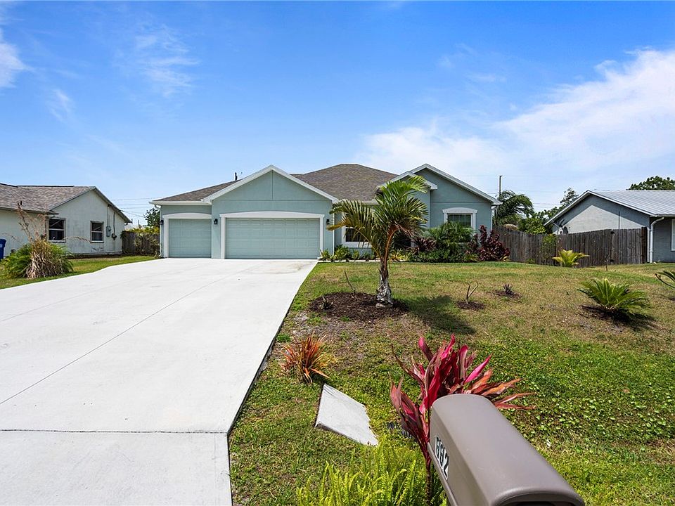 Welcome to your dream home in Sebastian, Florida! This stunning property, built in 2022, offers the perfect blend of modern luxury and coastal charm. With four spacious bedrooms, two bathrooms, and a three-car garage, there's plenty of room for both relaxation and entertaining. The open floor plan boasts high ceilings, ample natural light, and stylish finishes. The gourmet kitchen features white shaker cabinetry, stainless steel appliances, and a large breakfast bar, making it a chef's delight. Step outside to the large backyard, ideal for gatherings or simply enjoying the Florida sunshine