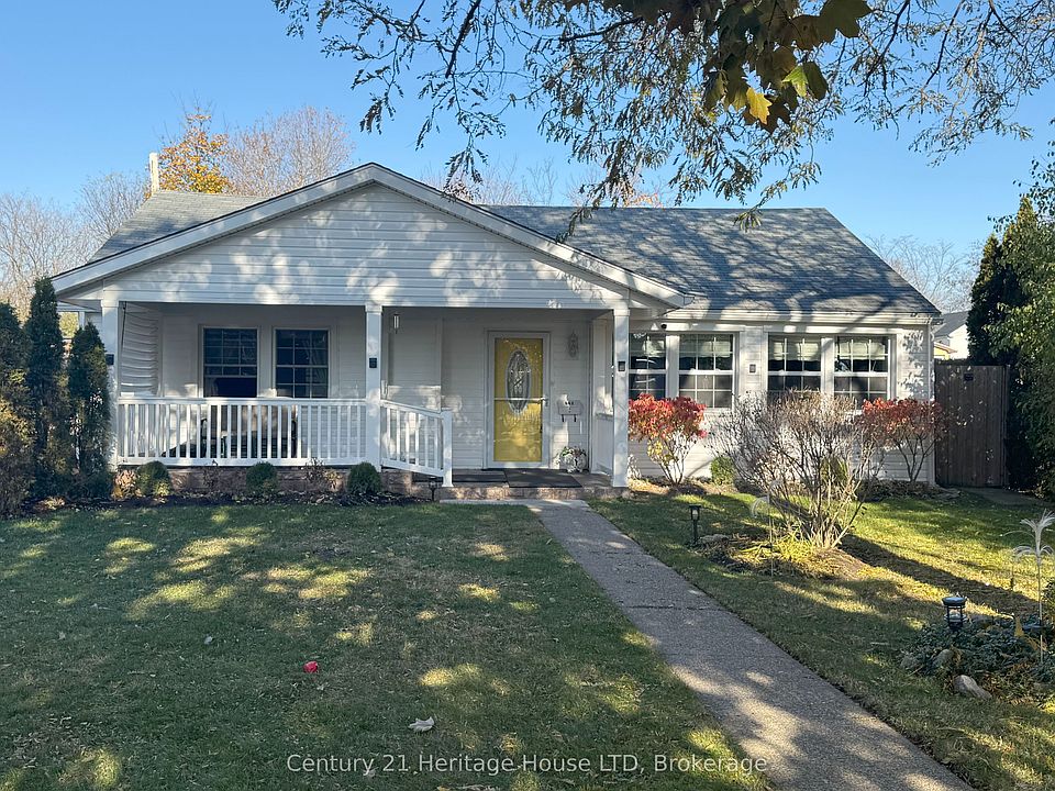Location, Location, Location! Wake up to breathtaking sunrises over Lake Erie, best enjoyed with a morning coffee on the front porch, or unwind in the serenity of your private, landscaped, fully fenced backyard. Ideally located just steps from the shoreline, this tastefully updated 2-bedroom + office, 1-bath home offers the perfect blend of charm, comfort, and convenience. Inside, the bright, carpet-free layout features two main-floor bedrooms, a 4-piece bath with a corner jacuzzi waterfall tub and a custom eight-jet shower, and a spacious family room with vaulted ceilings, laminate floors, two gas fireplaces, and large windows framing garden views and distant glimpses of Lake Erie. The two gas fireplaces add nostalgia to the already cozy atmosphere throughout the winter season. French doors connect the family room to the dining/living space. Outside, enjoy beautifully landscaped gardens, lake views from the front porch, and a generous lot set back from Lakeshore Road for added privacy. Steps from the Friendship Trail and minutes to uptown amenities, this property also includes three detached sheds, a single driveway with parking for 3 to 4 vehicles, and ample green space. Notable updates include a covered porch with water views, most windows replaced, a backyard gazebo, and a new split heating/cooling system. This is a rare opportunity to own in one of Fort Erie's most sought-after lake-adjacent locations.