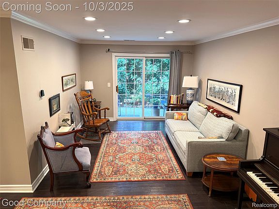 Ranch end unit condo in the heart of downtown Birmingham! This stunning, first floor condominium offers an open floor plan with white kitchen featuring stainless steel appliances and gas range. Off the living room, step through a doorwall to the private tree-lined patio. Master bedroom features a huge walk-in closet with built-ins, the second bedroom also offers a big walk-in closet and a door wall leading to the private patio. Features in-unit washer and dryer, hardwood floors throughout and private storage closet down the hall. Stroll to restaurants, shops, entertainment and parks in minutes and enjoy the beauty Birmingham ownership. Buyer agent to verify all information.