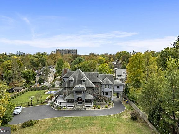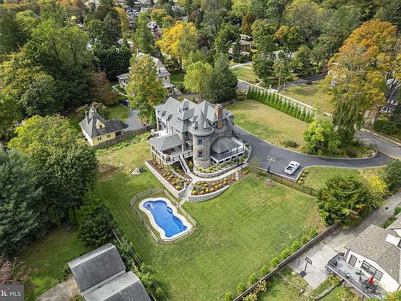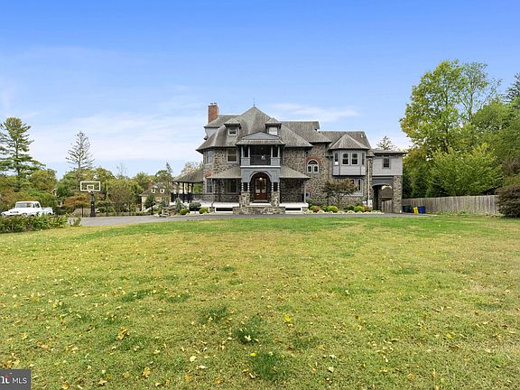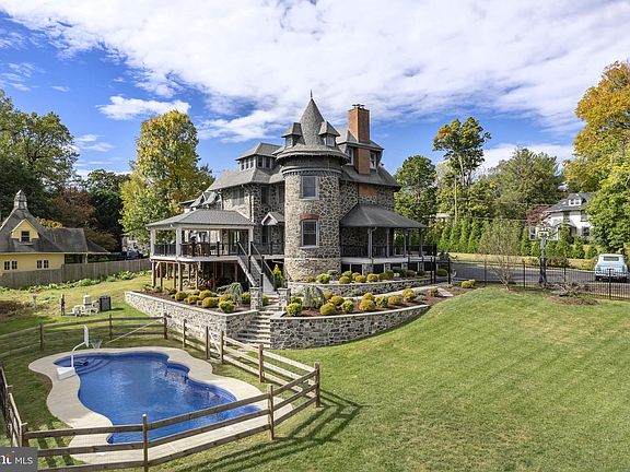 Discover timeless elegance at 662 South Highland Avenue in Merion Station, a historic residence that invites you to experience sophisticated living. Built in 1888 and attributed to the famed Frank Furness, this grand home boasts seven spacious bedrooms and three and a half baths, perfectly situated on an expansive 0.92-acre lot with an in-ground saltwater pool, a vast rear deck with a covered sitting area and grill/kitchen area, and much more. Step inside to a world of architectural distinction, where original stained-glass windows and intricate millwork embellish the interiors. The grand foyer welcomes you, leading to a formal living room adorned with a stately stone fireplace. The unique curved "tower" room adds a touch of character, while the substantial formal dining room and sunlit porches provide charming spaces for entertainment and relaxation. The kitchen is a chef's dream, with granite countertops, custom luxury cabinetry, a Wolf gas range, double stainless steel farmhouse sinks, and upscale stainless-steel appliances, along with a huge island for meal prep and an eat-in experience. A powder room, complete with natural stone walls and a custom-painted mural, is found adjacent to the kitchen. The mudroom is also found here, and features that same natural stone wall with plenty of storage cabinets, along with access to the rear deck and the laundry room. The second floor presents four beautifully designed bedrooms, with the top of the staircase offering a private sun porch. The master suite offers a tray ceiling, plenty of natural and recessed lighting, a private sitting area, huge closets, a tiled fireplace, along with the en-suite bathroom, complete with a marble-topped double vanity and tiled standing shower. Continue to the third floor to find additional rooms, including the top of the rounded turret, and a full bath, all ready for your final touches. For the technophile, the home has cat-6 and an in-ceiling speaker-system throughout. Outside, the property is bounded by evergreen trees, providing a serene backdrop for outdoor enjoyment. Apple trees and raspberry bushes bear copious fruit in season for homemade delicacies. A 40x40 basketball area provides fun for all along with a beautifully redone driveway that provides ample parking. Conveniently located just a five-minute walk from the train station, this home combines historical charm with modern convenience. All of the modern upgrades one could expect and much more, including a new roof, a state-of-the-art geothermal heating/cooling system, electrical service upgraded, and so much more all done in the last roughly ten years. Embrace a piece of architectural history that promises a unique living experience in the coveted location of Merion Station.