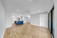 - Ceiling Fan(s), Kitchen/Family Room Combo, Living Room/Dining Room Combo, Open Floorplan, Primary Bedroom Main Floor, Solid Surface Counters, Split Bedroom, Stone Counters, Thermostat, Walk-In Closet(s)