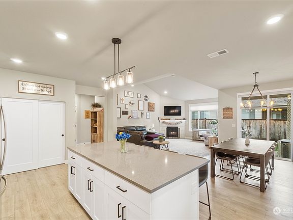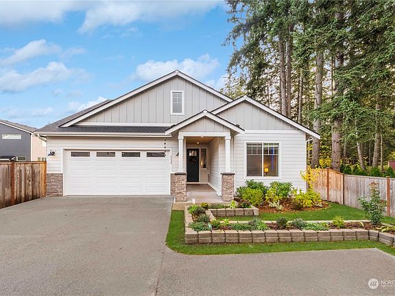 Better than new, this stunning home blends luxury, functionality, and charm! The gourmet kitchen features quartz countertops, white cabinetry, under-cabinet lighting, a large island, double ovens, & single-basin undermount sink. The great room boasts a vaulted ceiling, fireplace, & expansive windows for abundant natural light. The primary suite offers a luxurious 5-piece ensuite with a soaking tub, dual showerheads, & walk-in closet. Staying organized is effortless with 200 sq.ft. of partially finished storage & ample built-ins. Outside, enjoy a fully fenced yard with dual RV gates & a sprinkler system. No HOA & centrally located with easy access to local shopping, medical, & JBLM! Up to 1% lender credit available. Check out this gem today!