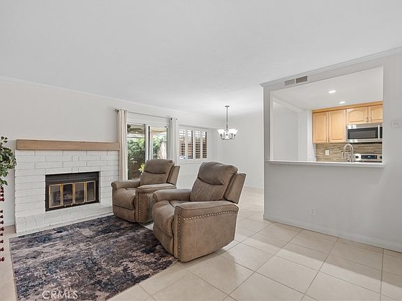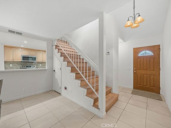 Move-in-ready two-story townhome in the Alta Loma Woods community, offering an open floor plan, central AC, and direct-access 2-car garage with epoxy flooring. The living room features a painted brick fireplace, plantation shutters, and a sliding door to a private backyard with a full-length covered patio and ceiling fan. The kitchen includes quartz countertops, mosaic tile backsplash, stainless steel appliances, recessed lighting, a dual-basin sink, and a pass-through bar to the living area. Adjacent dining area offers backyard views and tile flooring. All bedrooms are upstairs, each with its own bathroom. The primary suite includes vaulted ceilings, two closets, plantation shutters, and a full bathroom with tiled shower surround and updated cabinetry. The second bedroom features a walk-in closet, updated ceiling fan, and an ensuite ¾ bathroom. Additional features include crown molding, neutral paint, wood-look flooring throughout the upper level, and tile flooring on the main level. The downstairs powder room offers a pedestal sink and beadboard wainscoting. The separate laundry room provides upper storage cabinets and direct access to the garage. The private backyard includes space for outdoor dining or lounging. Community amenities include a pool, spa, clubhouse, and landscaped greenbelts with walking paths. Convenient access to the 210 Freeway and close to shopping, and multiple local parks including Miller Park and Red Hill Community Park.