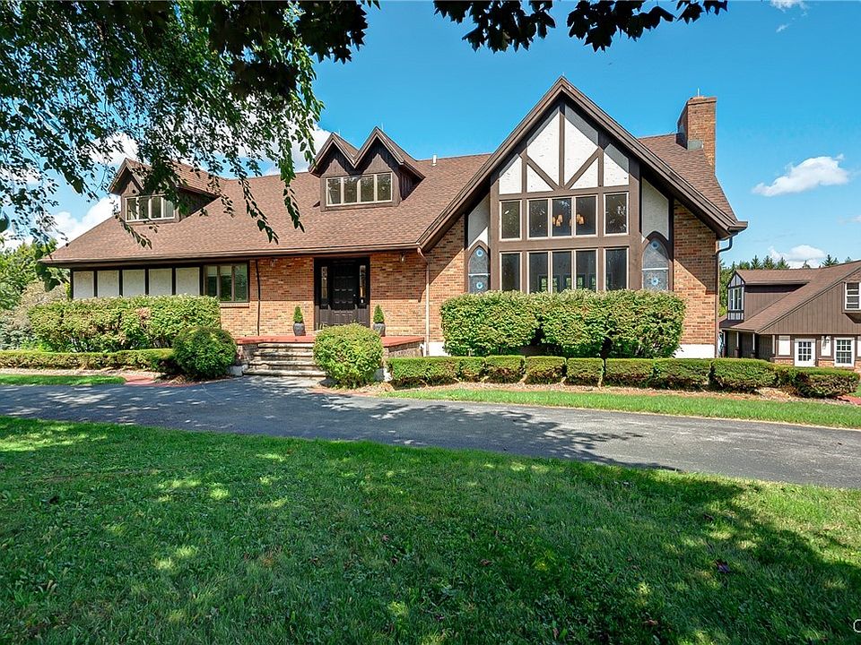 A Scenic, Private Driveway winds its way through Mature Trees and Rolling Landscape leading you to this One-of-a-Kind 4,500 sq ft English Tudor Estate tucked back on 52 Acres with Sweeping Views for Miles.