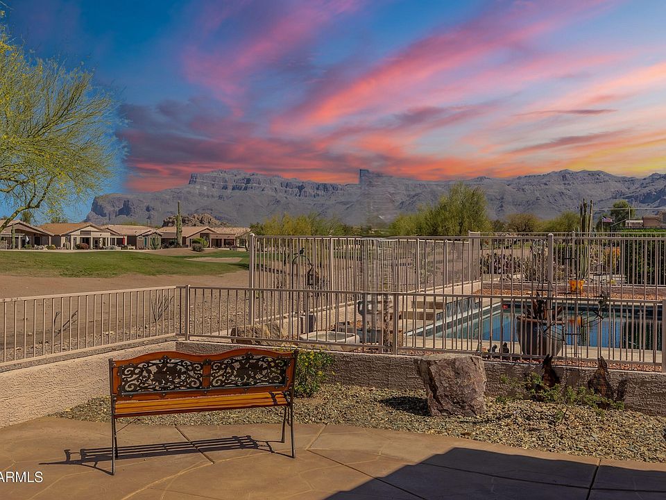 YOU'LL LOVE THE SPECTACULAR SUPERSTITION MOUNTAIN VIEWS FROM THE PATIO LOOKING UP THE 7TH FAIRWAY FROM THIS CHARMING HOME LOCATED IN MOUNTAINBROOK VILLAGE. GOLD CANYON'S MOST SOUGHT AFTER OVER 55 COMMUNITY! THIS POPULAR SAGUARO MODEL HOME IS EVEN BETTER WITH AN EXTENDED 400' SQ FT LIVING ROOM ADDITION AND GORGEOUS GRANITE KITCHEN ISLAND REMODEL INCLUDING A NEW KITCHEN SINK, BAR SINK AND EXTENSIVE USE OF BRASS RAILINGS AND FOOT RAILS. MUST SEE TO BE APPRECIATED! LARGE PRIMARY BEDROOM WITH MASTER BATH INCLUDES DOUBLE VANITIES, GARDEN TUB, SHOWER & WALK-IN CLOSET. SEPARATE GUEST BEDROOM & DEN ALLOWS FOR PRIVACY. GAS FIREPLACE. AMPLE OAK CABINETRY. CORNER PANTRY. REDUCE HIGH ENERGY COSTS WITH OWNED EFFICIENT SOLAR PANELS! R/O SYSTEM, 4' GARAGE EXTENSION & ELECTRIC CAR CHARGING STATION! WOW!!