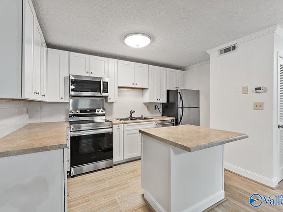 1-BR condo w updated laminate n tile flooring, new paint, stainless appliances (incl fridge/washer/dryer) create a warm & inviting space. Kitchen w updated soft-close cabinets & counters, perfect for cooking or gathering w a friend. Enjoy am coffee on cov porch, w large storage closet. On sunny evenings, cool off by pool or meet neighbors @ clubhouse, then unwind w evening walk thru community. Newer HVAC & water heater. Location minutes fr Midtown, universities, Redstone Arsenal, Bridge St, & Research Park, this condo blends comfort, & convenience. Great starter home, or income property. Info deemed reliable but not guaranteed. Buyer advised to confirm all information. Virtually staged