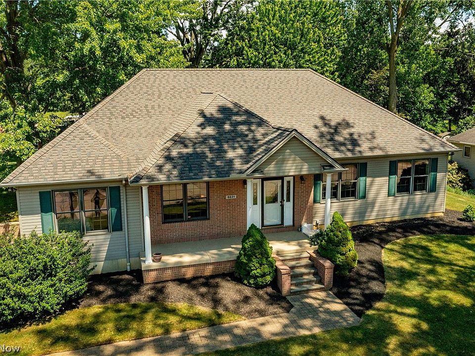 Welcome Home! Turn the key and move right into this meticulously maintained custom built ranch situated atop a gentle hill in Amherst Township’s Hidden Valley. This much loved one owner home was built in 2000 and offers a well-designed floorplan. Upon entering the great room with 11' ceilings, your eye will be drawn to the natural light beaming through the tall windows that surround the warm and inviting fireplace. The spacious feel continues with 9’ ceilings throughout the remainder of this level. Open to the great room is the kitchen featuring solid hickory cabinets, a peninsula with seating & a separate breakfast nook. The dining room is steps away, as well as the office with double French doors featuring views of the neighborhood. The entire north end of the home is dedicated to the owner's suite boasting a spacious walk in closet & full ensuite bath. Rounding out this level is a second bedroom, a full bath as well as the spacious laundry room with a sink, counters and loads of cabinets. The fully finished lower level offers 8 ft ceilings throughout, a spacious entertainment area with a kitchenette, third bedroom with an egress window system and full closet. There’s also a full bath as well as the utility room housing the mechanicals of the home with space left for storage. The spotless attached 2 car garage with 10' ceilings can be conveniently accessed from this level and offers a bonus area perfect for a workshop as well as a separate enclosed room for storage which doubles as a safe room in a weather emergency. The beautiful backyard features the shade of Oak and Maple trees, a spacious garden shed and a comfortable deck. The exterior split block retaining wall that beautifully flanks the rolling lines of this 1/2-acre lot is second to none in adding to this home's curb appeal! This residence fondly known in the neighborhood as “the house on the hill” offers a perfect blend of comfort & style and is ideally located with access to I-90 & the Ohio turnpike.