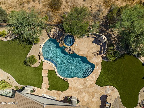 Looking for a private retreat in the desert? This spacious 3/4-acre property offers the perfect blend of comfort and relaxation, featuring a sparkling pool, soothing spa, mature landscaping, and vibrant artificial turf for low-maintenance greenery--ideal for lazy afternoons or entertaining guests. Inside, the beautifully updated kitchen is a chef's dream, complete with new cabinetry, countertops, high-end appliances, designer backsplash, and an oversized walk-in pantry for all your storage needs. With 4 bedrooms and 3 bathrooms, there's room for everyone.The expansive primary suite includes a private backyard entrance and a spa-like bath designed for ultimate relaxation.Located in the gated community of Saguaro Highlands, you'll enjoy quick access to shopping, schools, and restaurants