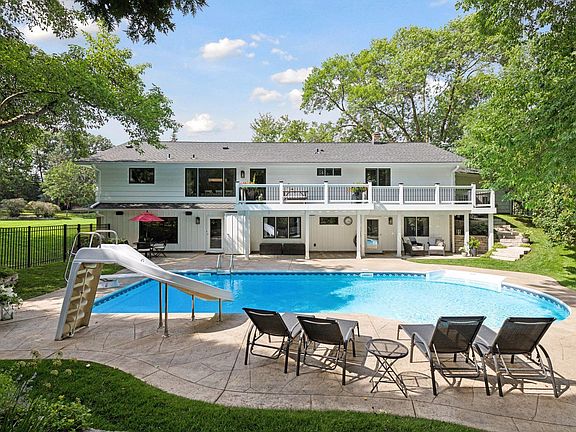 Welcome home to this expansive rambler in the heart of Edina with a standout backyard oasis offering the ultimate setting for relaxation and summer get-togethers. This serene estate is nestled on a corner, ½ acre, treed lot in Edina’s highly-sought after, Indian Hills neighborhood. The amazing tree-lined backyard is simply perfection with its sparkling salt water pool, stamped patio, and lush landscaping. It offers timeless charm and contemporary sophistication with white cabinetry, stylish craftsman style doors, and gleaming hardwood floors. The gourmet kitchen is a chef’s dream, boasting high-end appliances, granite countertops, and a oversized island w/ large breakfast bar is ready for entertaining. It offers an open-concept design with an inviting, sunken living room showcasing a cozy, stone fireplace. Large windows throughout bring in an abundance of natural light and create the perfect balance of warmth and luxury. Spacious 3 bedrooms on the ML include a serene primary suite, complete with a private ¾ bathroom and generous closet space. 5 bedrooms, plus a den are thoughtfully designed, offering comfort and versatility. Each bath offers a unique style and all feature sleek finishes w/ classic tilework and design. The lower-level bathroom is fully renovated with a steam shower ideal after a dip in the pool. The spectacular lower level offers custom bar space w/ abundance of storage built-ins, amusement area, speaker system, 2nd fireplace and walkout to the backyard retreat. Sprawling deck space offers great entertaining area w/ commanding views of all the backyard fun. This home is located nearby top-rated schools, abundance of shopping options, dining, parks, trails, and more! Don’t miss this incredible rare opportunity in Edina.