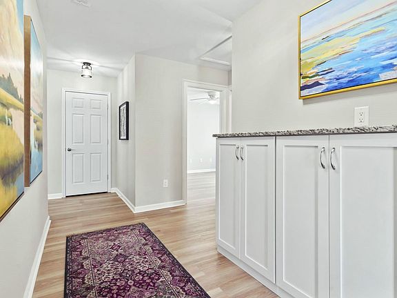 Nestled in a quiet cul-de-sac in Myrtle Beach Golf and Yacht Club, this beautiful three-bedroom, two-bath home features an open-floor plan, with a stunning kitchen and cathedral ceiling. The main living area flows into a 20’ x 20’ four-season Carolina room, where two walls of sliding glass doors offer a beautiful nature view of a park-like backyard that borders HOA-owned, dedicated “green” land. This home offers the benefit of extensive recent renovations, combined with an established neighborhood, mature trees and shrubs, and amenities including the security of a 24/7 staffed entry gate. Outside, premium vinyl siding, upgraded architectural roof shingles, and gutter guards were installed in 2023. A patio surrounds the full back of the home, providing a great place for outdoor entertaining. The built-in storage shed, with a handy utility sink and shelving, is accessed from the patio. The kitchen is stunning, and a chef’s delight. It was completely renovated in 2022 with quality-brand stainless-steel appliances, lots of functional cabinets, granite countertops, and a large island with built-in storage. The adjacent dining area features a built-in buffet server with storage. Luxury vinyl flooring was installed throughout the home in 2022, except for the tiled bathrooms. Both bathrooms have been recently updated, with new tile, vanities, granite counters, and fixtures. The primary bedroom suite is separate from the other two bedrooms, and offers a raised ceiling and en suite bath with a tiled, walk-in shower. The large walk-in closet features a custom closet system. The HVAC heat pump system was replaced in 2022, and the hot water heater in 2024. A full-capacity smart washer/dryer tower was installed in 2023, along with custom shelving. Major appliances, custom window treatments, and ceiling fixtures shown in the listing photos will come with the home. Owners’ other furnishings and electronics are not part of the sale, and have been changed since the photos were taken. Myrtle Beach Golf and Yacht Club is an established, gated community with lots of amenities, including a pool, hot tub, playground, picnic area, pavilion, clubhouse, and tennis and shuffleboard courts. There’s even the option of a separate storage area on premises for RVs and trailers through the HOA. Myrtle Beach Golf and Yacht is a short drive from the beautiful ocean beaches of the area, and a boat ramp for the Intracoastal Waterway is close by. Plus, it’s centrally located to take advantage of the many options for golfing, dining, entertainment, and shopping nearby in Myrtle Beach and surrounding communities!