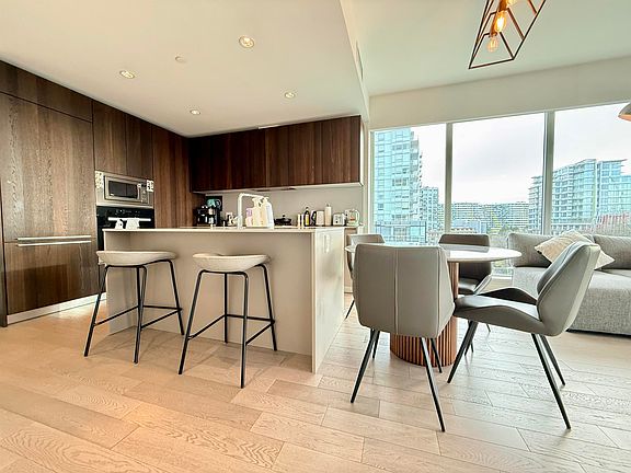 Fully furnished corner unit with open views in the highly coveted waterfront community 2 River Green by ASPAC. This residence exemplifies elegant West Coast living. Perfectly situated in a convenient central location, it is just minutes from the Olympic Oval, T&T Supermarket, and a variety of shops and restaurants. Surrounded by the natural beauty of the Fraser River, with scenic walking and biking trails, this master-planned community is renowned for its architectural excellence and timeless design. The interior reflects the same level of sophistication, featuring Miele stainless steel appliances, Miele laundry suite, and a Bang & Olufsen home automation system. Residents enjoy 5-star resort-style amenities, including an indoor swimming pool, fitness centre, yoga studio, theatre room