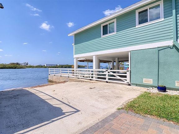 MILLON DOLLAR VIEWS with DIRECT GULF ACCESS- all without the million-dollar price tag! This ELEVATED 2 bedroom, 2 bathroom home is the perfect coastal home offering 60 feet of water frontage and your own boat ramp providing seamless access to the Gulf of America with gorgeous sunsets views from the covered patio or the screened in porch upstairs! Relax and spend your days watching dolphins and manatees swim by or cast your line right from your backyard to catch redfish, snook, and snapper. Drop the kayaks in for a ride around the canals or over to Sam's Beach Bar for lunch. The side yard boasts plenty of room to store your boat trailer or jet skis and there are 2 kayak racks. This home is MOVE IN READY with newer vinyl flooring in the main areas, impact windows and the kitchen has been updated with quartz countertops and a beautiful new backsplash. Both bathrooms have been updated with walk in showers. On the 1st floor is a 2-car garage with plenty of storage space and a large, covered patio for entertaining family and friends or just relaxing and looking at nature. Hudson Beach is a small coastal town just north of Tampa & Clearwater Beach along the Gulf coast with NO HOA! Recreational pursuits, coastal charm, and a sense of community without the crowds. Take a short ride on the golf cart to the public beach, marinas and several restaurants and tiki bars like Sam's Beach Bar, Inn on the Gulf and Ollies. Conveniently located off Hwy 19 with shopping and hospital nearby. Just 15 minutes to the expressway for easy access to downtown Tampa and the airports. Don’t miss this rare opportunity to own an affordable coastal paradise with direct Gulf access. Come start living the salt life today!