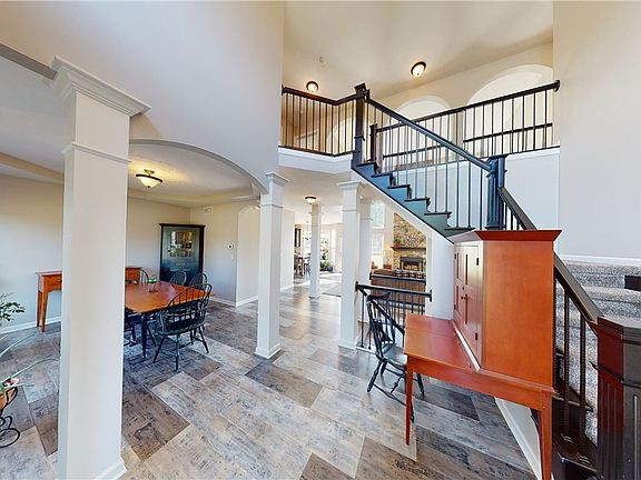 Located on a quiet cul-de-sac in the desirable Wooded View Estates, this stunning 5-bedroom, 4 full bath colonial boasts an inviting open floor plan. Entering through the 2-story foyer, you are greeted by soaring ceilings, decorative moldings/trim, a bold staircase, & an abundance of natural light. The spacious living room features an impressive 2-story fireplace, cathedral ceiling, and large striking windows. The gourmet eat-in kitchen incorporates granite countertops, cherry cabinetry, stainless steel appliances, a center island, generous counterspace, & a pantry. Rounding off the main floor, you will find a bright airy office, bedroom, full bath, formal dining, and mudroom. Upstairs, you are graced with an amazing scenic view of your wooded oasis! The sizable primary suite w/ vaulted ceiling offers 2 walk-in closets & a luxurious ensuite w/ 2 separate sink areas, new garden tub, tile shower, & toilet closet. Three additional roomy bedrooms are situated on the 2nd floor along w/ a co
