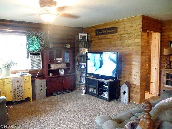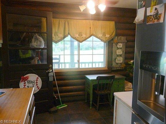 Great starter log home and perfect country setting for this little bungalow. 1-2 br, 1 bath one story home with much potential. There's a full walk-out basement with screened in porch, covered porch and carport for added storage. The 24 x 32 garage was built on 2007 with openers and concrete floors. The home has all new flooring throughout, an eat-in kitchen, laundry in the basement and the 2nd bedroom in the basement with family room area downstairs as well. The home has county water and septic and is surrounded by a nicely landscaped yard on a 1/2 acre lot. The furnace was new in 2005 and the home is in move in condition. So call today. Home is close to school and Salt Fork. This is a home you must see inside and would make a great getaway home.