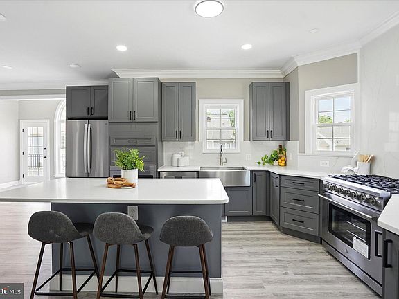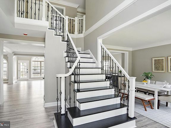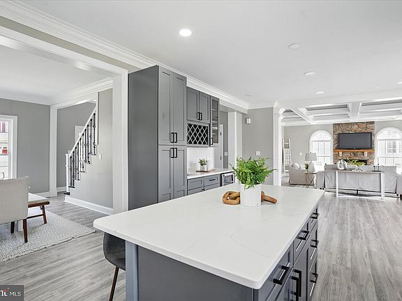 Welcome to this beautifully reimagined colonial, built in 2005 and thoughtfully renovated to meet the demands of today's discerning buyer. From the moment you step inside, you’ll be captivated by the grand, refinished staircase featuring elegant iron balusters and the seamless flow of brand-new Luxury Vinyl Plank flooring throughout the home. The spacious great room boasts striking coffered ceilings, exquisite crown molding, and dramatic floor-to-ceiling windows that flood the space with natural light. The kitchen is a true showstopper, equipped with an abundance of sleek gray shaker cabinetry, quartz countertops and backsplash, a large eat-in island, and top-of-the-line stainless steel appliances—including a 36" gas range, a built-in microwave drawer, counter-depth refrigerator, and wine fridge. Upstairs, you’ll find four generously sized bedrooms, two fully renovated bathrooms, and upper level laundry! The oversized primary suite is a retreat unto itself, offering a massive walk-in closet and a luxurious en-suite bath featuring brand-new tile, a 60" double vanity, soaking tub, and a stand-up shower (custom glass door to be installed prior to settlement). The fully finished basement offers even more living space with updated flooring, recessed lighting, a full bathroom with tub/shower combo, a custom L-shaped stone bar, and a brand-new walk-out slider to the backyard. Additional highlights include a brand-new HVAC system and a spectacular rear Trex deck that spans the full width of the home—ideal for entertaining, summer BBQs, or simply relaxing outdoors. Homes like this are rare—don’t miss your chance! Schedule your private showing today.