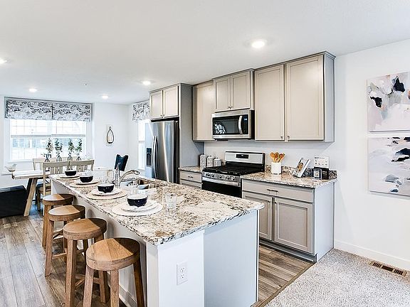 QUICK CLOSE OPPORTUNITY!! 5.5% interest rate incentive available on this home, and please ask how our additional incentives allow you to buy that rate down even lower! 3 Bedrooms & laundry upstairs including primary suite with walk-in closet. The finished lower-level bonus room is perfect for guests, home office, or fitness. This home showcases a designer inspired interior package with white cabinets, expansive granite island for 4-person seating, vented microwave hood and gas range. The open concept main level is a must see! All homes come with a HUGE deck, Smart Home Technology, and high efficiency mechanicals. There is a walking path from the neighborhood to Cottage Grove Elementary and is part of #833 South Washington County School District. You can walk to the popular Junction 70 Grill, and are a short drive from shopping, entertainment, parks and more restaurants! HOA covers trash/recycling, exterior maintenance, lawn care and snow removal, insurance, and irrigation!