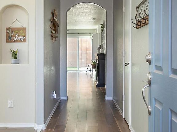 Fall in love the minute you enter this beautiful and move-in ready 4 bedroom home, built by Vantage, located in desirable Mountain Hawk Estates! Open floor plan with stylish upgrades: stunning tile and laminate wood flooring graces the kitchen, great room, master bedroom & hallways! Upgraded lighting! Spacious kitchen offers stainless steel appliances, gas oven, pantry, breakfast nook and solid surface counter tops! Great room with custom built-in entertainment center and sliding door opening to the artfully designed, low maintenance backyard! Separated master bedroom with walk-in closet and full bathroom! 2 roomy secondary bedrooms and full hall bathroom! Separated bedroom, tucked away from the the other bedrooms, perfect for guests! No HOA fees! Easy access to 550 and I-25! NICE!