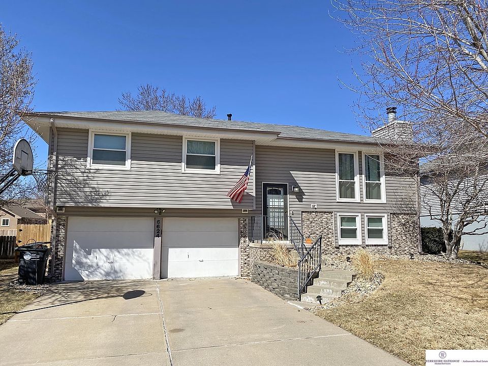 Fantastic Millard location just blocks from neighborhood park and easy access to I-80. Large recently built deck and large patio, lawn sprinkler system. Low maintenance vinyl siding and windows. Extra deep garage, fenced rear yard. Finished rec room in basement. Primary bedroom with en suite bath.