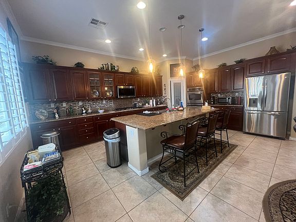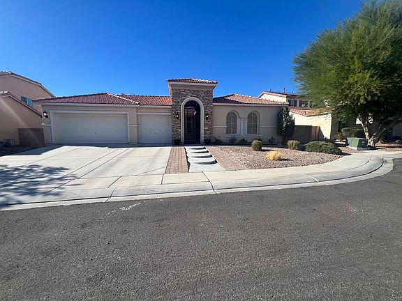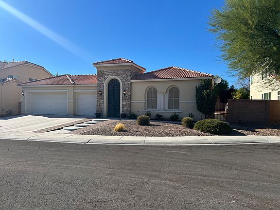 Near Aliante. This single story home has it all. Over 3000 sq ft, 4 bd rms plus den, 3 baths, 3 car garage with epoxy flooring, lovely gated courtyard leads to dbl stained glass entrance doors, which welcomes you to this masterpiece of design. Formal living room & separate family room both w/ fireplaces, formal dining room, large separate primary bedroom and bath, dbl doors to den/office. Beautiful kitchen w/Stainless appl, dbl ovens, walk-in pantry w/ stained glass door, cabinets galore, huge island w/breakfast bar and 3 accent hanging chandeliers over bar in addition to recessed lighting, Every Room is enhanced with Plantation shudders and ceiling fans w/lights in every room, fully landscaped back yard. All this on a quiet cul de sac. Home is immaculate and like new condition. What a wonderful, warm and inviting home to have family and friends over for the holidays. Get ready to FALL IN LOVE WITH THIS HOME AND MAKE IT YOURS! Home will be unfurnished
