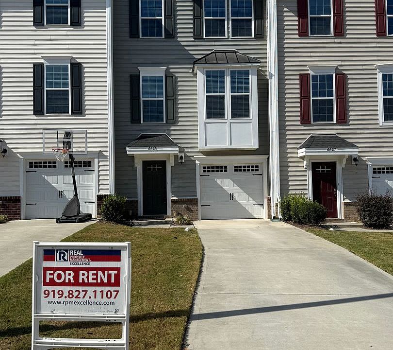 Welcome to this stunning 3 story townhome w/3 Bedrooms, 2 full bathe and 2 convenient half bathrooms, located in Townes at Stone Ridge neighborhood. Love the open floor plan, you'll find a main level bonus room that can be tailored to your needs, whether it be a home office, gym, or playroom. Fully equipped kitchen with elegant white wood cabinets, granite countertops, breakfast bar & eat-in kitchen combo, all stainless steel appliances, stylish backsplash, and all modern white & grey tones. Dining & living room adjoining on 2nd level, high ceilings, numerous windows for plenty of daylight. All 3 bedrooms and laundry room are conveniently located on the 3rd. This property boasts a 1-car garage and a 2-car driveway, providing ample space for your vehicles. The home also features a back deck and fenced in rear patio, perfect for outdoor entertaining or simply enjoying the North Carolina weather. As part of the community, you'll enjoy the benefits of common area maintenance and lighting, ensuring your surroundings are always well-kept and illuminated. Plus, lawn maintenance is included, freeing up your time to enjoy the things you love. Experience the perfect blend of comfort and convenience in this Raleigh home.