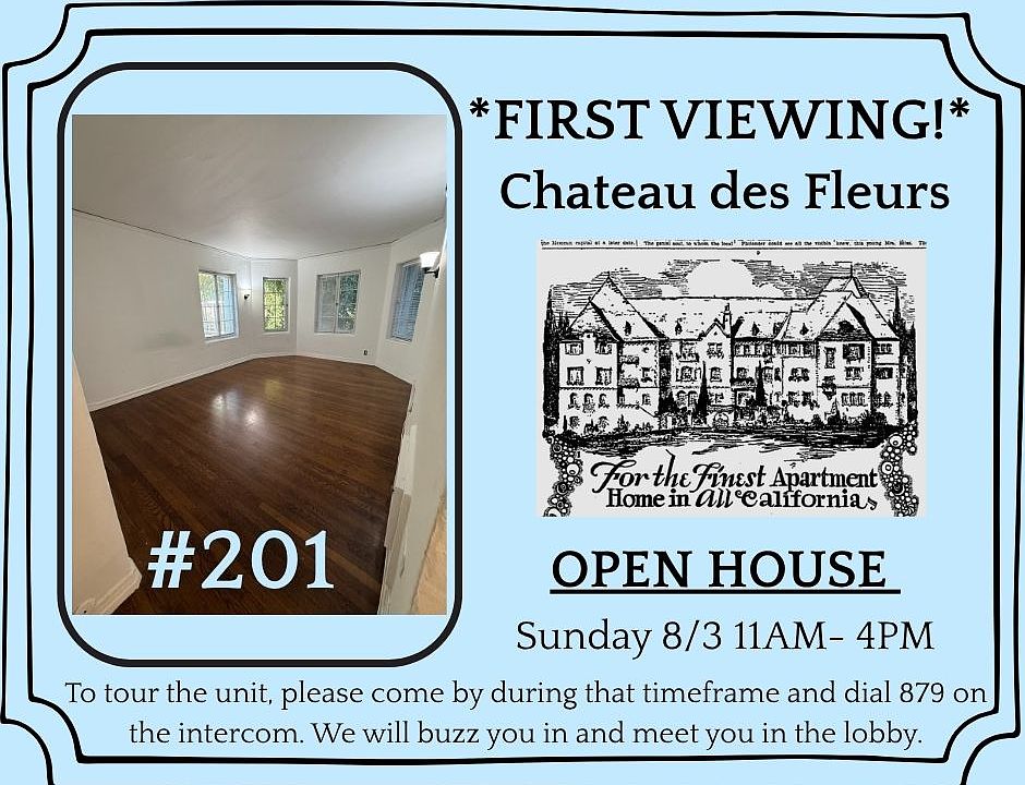 ** FIRST VIEWINGS AVAILABLE THIS SUNDAY DURING OUR OPEN HOUSE ** We are looking for future residents with a 8/15 move in date. Discover timeless charm at Chateau des Fleurs, a cherished historic landmark nestled in a prime location, on the border of Hollywood Hills and Whitley Heights. Built in 1927, this meticulously restored residence offers a rare opportunity to live in a piece of Los Angeles history. Unit #201: Get ready to relax in your new retreat adorned with updated wood floors, original archways, and built-in storage galore. The apartment is a large studio we actually prefer calling it a single because it has that much space and excellent natural light. The main room features a large turret-style front (hello, architectural gem!) and a massive closet that could be easily used for clothing storage, an office area, or vinyl station. The bathroom has original windows and tiling with a separate water closet, shower. The kitchen has excellent flow with an updated sink, tons of storage, and room for a dining room table. Perfect for entertaining! If you are looking for an updated apartment with charm for days look no further! The Building: Step through the wrought iron gates into a lush, quiet courtyard filled with mature trees, well maintained plants, and a koi pond. The arched lobby features original wood floors and not one, but two grand pianos. Throughout the building, the hallways have original tin tiled walls and cafe lighting. Amenities: Modern Comforts: elevator, communal spaces, pet friendly, and on-site laundry facilities Secure Features: an intercom system, secured mail room, and live-in managers Utilities (electricity, water, sewer, trash) included Location: Centrally located near Hollywood Boulevard, residents of Chateau des Fleurs are within a 5 minute walk to world-class dining (Musso and Franks), entertainment (Hollywood Bowl), nature trails (Runyon Canyon), and cultural landmarks (Hollywood Farmers' Market). With the Metro station and the 101 just blocks away, commuting throughout LA is effortless. You cannot find a better location! To be a competitive applicant we are looking for: a FICO score of 700+, an income of 2.5x monthly rent, and additional money in the bank. CA-based co-signers are accepted. Schedule Your Tour Today: Don't miss your chance to reside in this rare, landmark property renowned for its timeless beauty and unbeatable location. Contact us to schedule a private tour and experience Chateau des Fleurs firsthand. Contact Us: Message to get more information or schedule your viewing! Lease is 1 year and shifts to month-to-month after that first year. Utilities (water, electricity) and trash is included. Tenant responsible for internet.