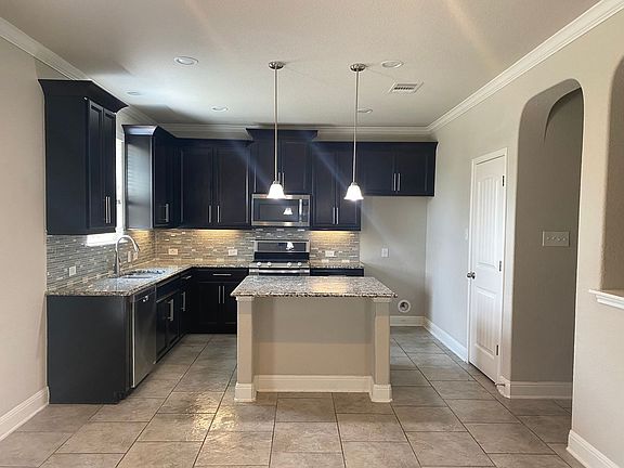 Extraordinary neat home in the Enclave of Steubing Farms subdivision. Crown molding, tile and carpet throughout. Impressive, spacious island kitchen with rich cabinet colors, inset lights, granite counters and gas stove matching stainless steel appliances, and an open floor plan. Small elegant built in desk in an office nook just off the kitchen. Master boasts a double vanity stand alone shower and garden tub with a huge walk-in closet. Large backyard with covered patio. located near major highways UTSA, shopping, eateries and Fiesta Texas. Washer and dryer included! Make ready in progress. **Pets allowed over 2 years**