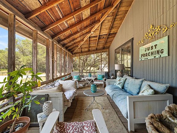 Welcome to your private sanctuary, perfectly set on 11 serene acres that create an inviting outdoor oasis. A grand wrap-around porch and impressive 10-foot doors set the tone as you step inside. The entryway opens into a stunning living space highlighted by soaring 25-foot ceilings and rich hardwood floors that flow seamlessly throughout the open-concept layout. The living room connects effortlessly to the elegant dining area and spacious kitchen, making this home ideal for both everyday comfort and effortless entertaining. The split bedroom floor plan ensures privacy, with the primary suite offering a peaceful retreat complete with a cozy fireplace and an oversized walk-in closet. Step outside to enjoy evenings around the firepit or take in the rustic charm of the barn. For hobbies, projects, or extra storage, a generous 1,200 sq. ft. shop provides endless possibilities. Located within walking distance of The Hideout Resort & Golf Course, this property offers not just a beautiful home—but an exceptional lifestyle.