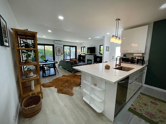 This spacious 2-bedroom, 2-bathroom home features an open-concept kitchen, in-unit laundry, and a private front yard enclosed by lush hedges for added privacy, perfect for morning coffee or relaxing evenings outdoors.