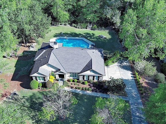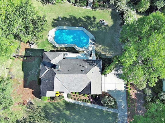 Welcome to this charming and thoughtfully designed home located in Green Island Hills, offering 5 spacious bedrooms, 4 full bathrooms, and hardwood floors throughout. Step through the front door into an inviting open-concept great room, highlighted by elegant trey ceilings and an abundance of natural light. The great room flows effortlessly into the dining area, creating an ideal space for hosting guests or enjoying everyday moments with family. The kitchen is a chef's delight, featuring stainless steel appliances, granite countertops, and convenient access to the back deck—perfect for outdoor dining, grilling, or soaking up the sunshine. The main-level primary suite serves as a peaceful retreat, complete with a luxurious ensuite bath featuring dual vanities, a soaking tub, separate shower, and two spacious walk-in closets. Also on the main level is a second bedroom and full bath, currently utilized as a home office—offering versatility to meet your lifestyle needs. Downstairs, the fully finished walk-out basement is designed with comfort and privacy in mind. It includes three additional bedrooms, two full bathrooms, a large living area, a kitchenette, and a generous storage room. Walk out from this level to a stunning backyard oasis, where you'll find an in-ground pool, manicured lawn, and plenty of room for guests, pets, and outdoor fun. For added convenience, an exterior storage room offers ample space for garden tools, pool accessories, or yard equipment—keeping everything organized and out of sight.