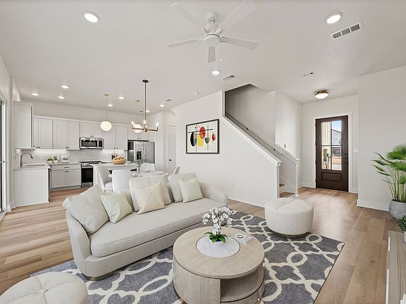 BRAND NEW Available NOW - Move in by October 31st and receive $1000 off November Rent! Executive Luxury Townhomes located in the Crossroads District of West Temple, 3 bedrooms with 2nd living area, 2.5 bath and 2 car garage. This townhome features upgraded fixtures, appliances (fridge, stove, microwave, dishwasher & washer/dryer), granite counters and MORE. Wood vinyl downstairs with carpet upstairs. Spacious kitchen with plenty of cabinets and eat-at island. Massive patio windows leading out to a covered private backyard oasis. Primary bedroom is upstairs with vaulted ceilings, ceiling fans in all bedrooms, primary bath includes double sink vanity, large walk-in shower and walk-in closet. Upstairs you will find 3 generous bedrooms with a 2nd living area and full bath.