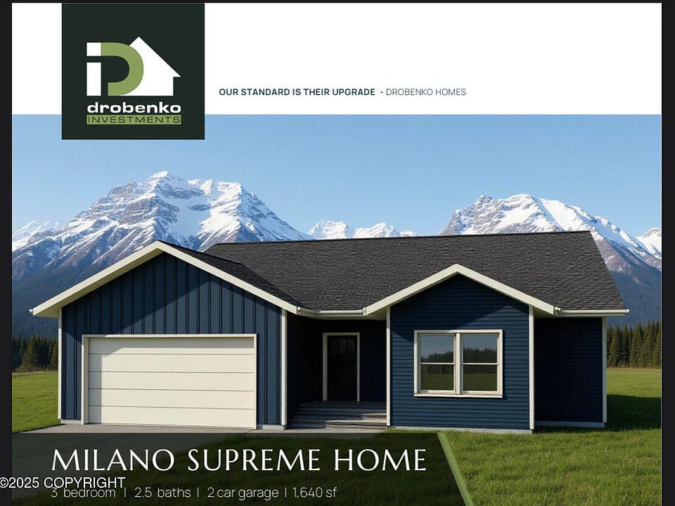 The Milano SupremeFramed up ! 1 of the 2 best view lots available.10' ceilings, 8' doors, Windows strategically placed for maximum views and privacy. Master Craftsmanship. ''Our Standard is Their Upgrade''. MatSu Home Builders Multiple Award Winner ..Since 2007