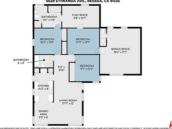 This 1379 square foot single family home has 5 bedrooms and 3.0 bathrooms. This home is located at 6628 Etiwanda Ave, Reseda, CA 91335.