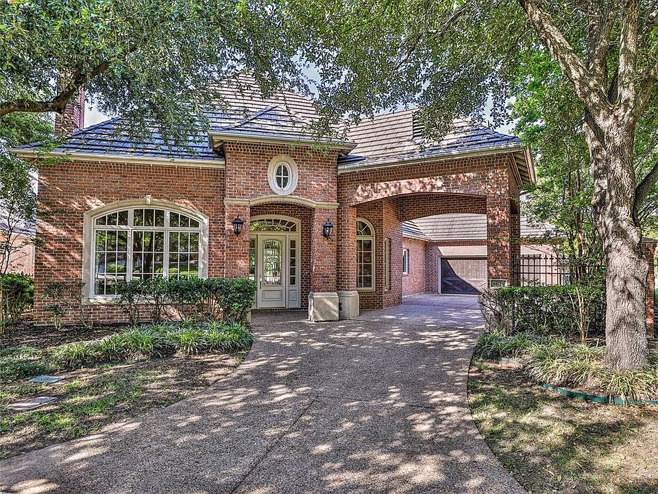 Beautiful garden home on a cul de sac, in the gated and guarded Mira Vista golf course community. Charming old world interior with brick exterior, lush landscaping and a porte-cochere for convenience. The towering ceilings and massive picture windows allow beautiful natural light and create an open airy feeling. Open chefs kitchen with attached breakfast room. The spacious 1st level primary suite has a bay window, an enormous closet and a luxurious attached bath. Also downstairs you'll find a study and a flex room that would be a perfect exercise room. Upstairs are 2 spacious bedrooms with a jack and jill bath. Many designer details throughout, and in a great location.