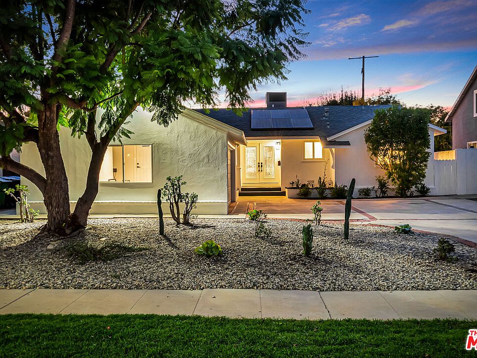 Welcome to Prime West Hills! This reimagined 4BR + 2BA, approximately 1,950 sq ft, California Ranch has been thoughtfully transformed into a turnkey gem, blending timeless charm with thoughtful upgrades. Inside, the open-concept design creates effortless flow for both entertaining and everyday living. At the heart of the home, the chef's kitchen showcases a sleek quartz countertop, a large island, and premium stainless-steel appliances, including a 5-burner Samsung oven/stove, a Kitchenaid dishwasher, and a wine cooler. Refinished hardwood floors, recessed lighting, and a cozy fireplace bring warmth and style throughout. Outdoors, a spacious yard with citrus trees sets the stage for gatherings, play, or quiet evenings under the stars. Additional upgrades include solar, a newer roof, and a tankless water heater, fresh paint inside/out, recessed lighting, smooth ceilings, a refreshed entry, and a beautifully finished garage (recently used as a 4th BR) w/walkin closet that adds versatile living space. Off-property benefits include award-winning schools and convenient access to Shoup Park, The Westfield Mall, The Village, and Warner Center, offering an amazing selection of restaurants, boutiques, shopping, and more. See the website for a comprehensive view of this property via video/aerial/drone/3D imaging.