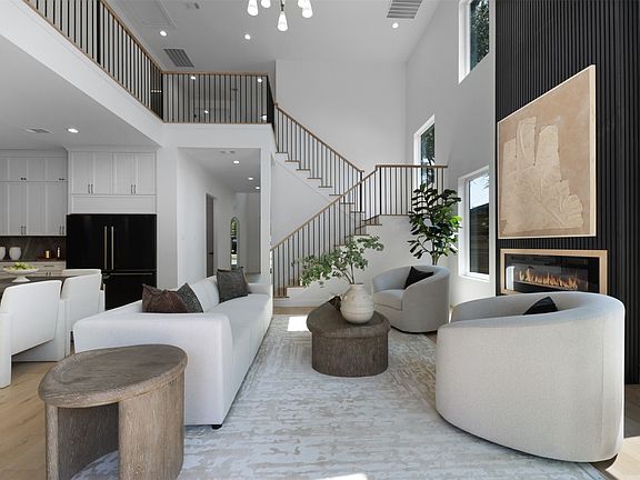 Step inside to soaring ceilings, wide-plank hardwood floors, and expansive windows that flood the interiors with natural light. The chef’s kitchen showcases sleek custom cabinetry, marble countertops, professional-grade appliances, and a statement vent hood—perfect for both everyday living and entertaining.