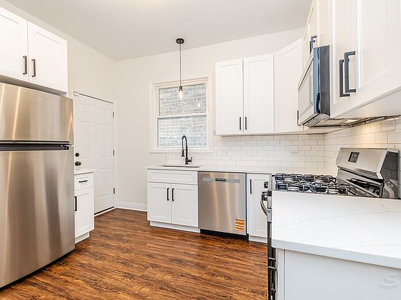 Newly renovated apartment featuring 2 beds and 1 bath. New kitchen and appliances. Dishwasher and laundry in unit. Parking pad in the rear. All included in the rent.