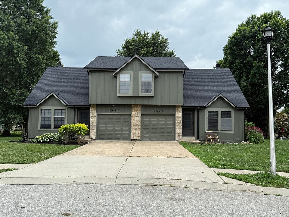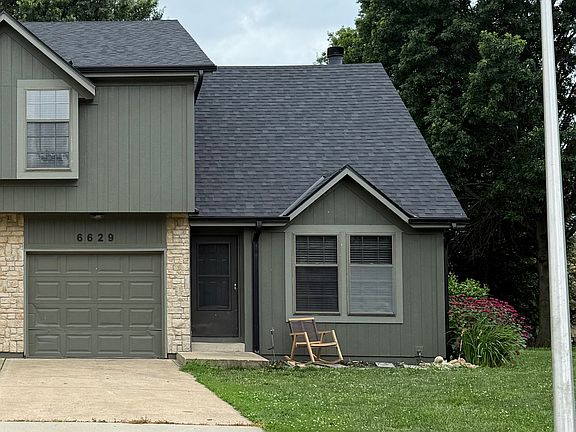 This is a great duplex with a large yard and a 1 car garage with an EV charging outlet. It has three bedrooms, one and a half bath, a living room with a fireplace, a large eat in kitchen (available seating at the counter), washer and dryer hook ups and a full unfinished basement. It is less than a mile from highway 69. Shopping and entertainment conveniently located. Walk to Blue Valley School District Schools, Lakewood Elementary and Lakewood Middle Schools. No Smoking Allowed.