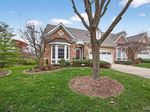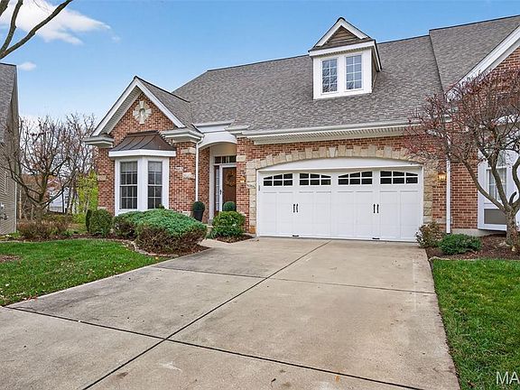 This gorgeous 3 bedroom, 3 bath luxury villa located in the desirable Barrow Ridge community of Ellisville, boasts more than 2900 sq ft of living space! Perfectly positioned on a cul-de-sac, the brick and stone exterior enhances the curb appeal of a home that truly combines comfort and style. Step inside to find new Bruce hardwood floors that flow across the main level. An open floor plan features 10 ft ceilings, crown molding in the foyer, dining and great rooms, and lots of natural light. The inviting great room offer a gas fireplace, recessed lighting, and opens to the coffered ceiling dining room with bay window. Enjoy meals in the breakfast room, which leads to a peaceful screened-in porch, perfect for morning coffee. The kitchen showcases granite counters, 42-inch cabinets, KitchenAid stainless steel appliances, a new electric cooktop, and plenty of prep space. The primary suite offers a huge walk-in closet and a private bath with corner soaking tub and adult-height double vanity. Rounding out the main level is a secondary bedroom, full bath and laundry room. Don’t miss the spacious retreat of the lower level that features 9-ft ceilings, recessed lighting, all new Mohawk carpet, and rough-in for a kitchenette or wet bar. The sliding door leads out to a patio overlooking the wooded backyard. Guests or extended family are sure to like the privacy of the 3rd bedroom and 3rd full bath.