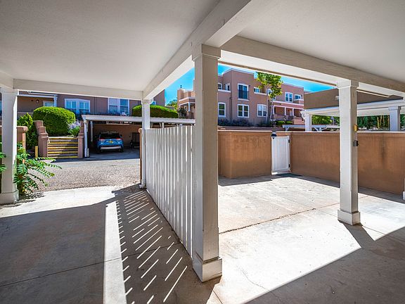 Unique, two-bedroom, one-bath, ground level condo nestled in the desirable community of El Matador. This condo includes tile floors in the kitchen, carpet in the living room and bedrooms, air conditioning, and forced-air heat. Enjoy the peaceful outdoors with a private enclosed front patio and a rear balcony. Also features the convenience of carport parking, and beautifully maintained grounds with mature landscaping and greenery. This tranquil gated complex is just minutes from the historic Santa Fe Plaza, restaurants, art galleries, Ten Thousand Waves Spa, and Fort Marcy Park.