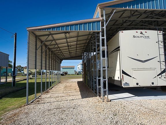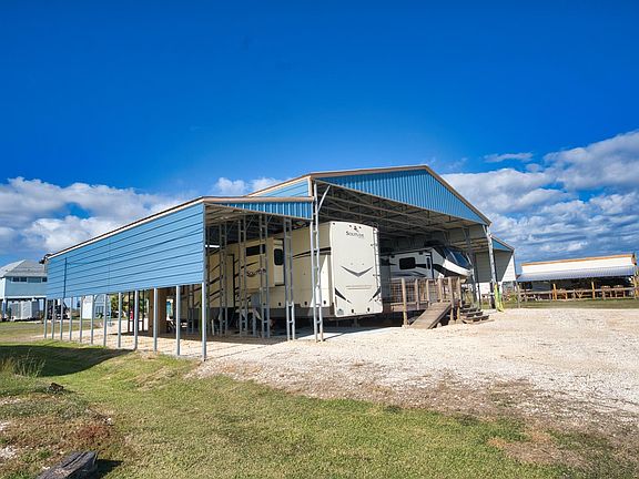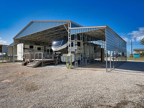 3 LOTS on Blue Water TURNKEY with 3 complete RV hookups - ready for you, your RVs and boat. These lots are pull through lots with a paved road on either side making it so very easy to park your RV under the 44 x 72 RV cover which has 2 RV hookups and 2 extra bays for parking vehicles or your boats. Each RV spot has a 15 x 44 concrete pad. There is a 16 x 44 wood deck between the 2 RV spaces which includes an outdoor kitchen with propane glass top stove, refrigerator, sink, and moveable island with wheels. There is also a 4 x 8 bath house with A/C, and an 8 x 8 storage room which includes a water heater. Each lot has electric and the 3rd lot has a culvert so a RV can be easily parked. The RVs do not convey with the property. This set up has everything you need to have your slice of Sargent close to the beach, restaurants, boat ramps, bait stores, Gulf of America fishing, and Matagorda Bay fishing. So much included in this one!! Don't let this GEM get away!