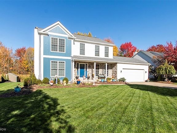 Beautifully maintained 4-bedroom Colonial located in the heart of Medina! This move-in-ready home features stunning LVT flooring (2021) throughout the first floor, an inviting eat-in kitchen with a center island and stainless steel appliances, a formal dining room, and a spacious living room. The cozy family room with a gas fireplace provides the perfect spot to relax and unwind. Upstairs offers four comfortable bedrooms with newer carpeting (9/ 2025), including a primary suite complete with an attached bath (double sinks replaced 10/25) and a walk-in closet. The finished lower level adds a large recreation room and ample unfinished space for storage. Step outside to your private backyard oasis—this deep lot backs to trees, a pond, and a natural habitat filled with wildlife. Enjoy the peaceful setting from your back patio featuring a goldfish pond, perennials, and a raised garden bed—ideal for outdoor entertaining or quiet evenings. Additional highlights include a two-car attached garage, storage shed, and numerous updates: roof (2020), front siding (2023), furnace (2023), A/C (2018), hot water tank (2020), sump pump (2020), front door (2021), and freshly painted first floor (10/25). Don’t miss the chance to make this exceptional Medina home yours—call today for your private showing!
