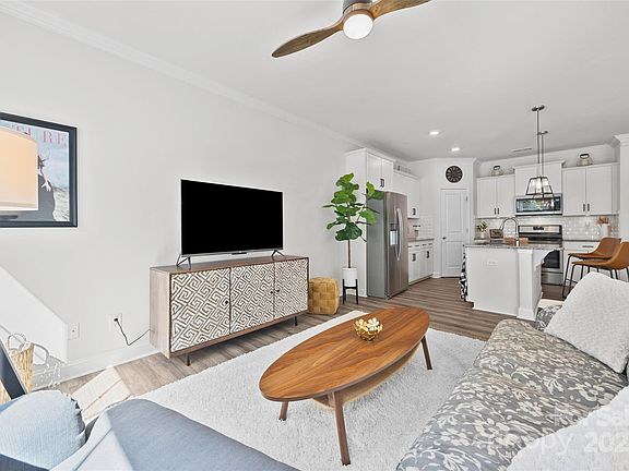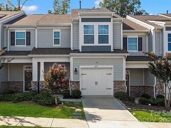 This townhome stands out with beautiful upgrades and exceptional care! The kitchen shines with an abundance of natural light, white cabinets, granite countertops, an upgraded backsplash, and designer cabinet hardware, adding a finishing touch. Up-dated custom lighting throughout, plus ceiling fans in the living room and all bedrooms, adds style and comfort. Washer, dryer, and refrigerator (all only 2 years old) stay! Sitting on a dead-end street with minimal traffic, this townhome offers privacy in the backyard, which is fully fenced and backs up to the woods. Just minutes from the fun on Lake Wylie, shopping, dining, and top-rated Clover schools. Neighborhood amenities include hassle-free full lawn care, pickleball fun, pool, and lots more!