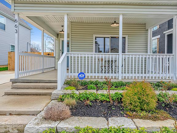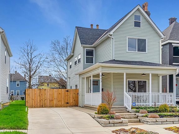Situated in the Milo Grogan neighborhood & walking distance to Italian Village & Short North this home has been fully renovated with many upgrades. Out front are new concrete sidewalks, parking pad, slab limestone, tiered raised beds & curated landscaping. You enter upon a tiled vestibule leading to living room & dining room with coffered ceiling, decorative fireplace & 1/2 bath. Hardwood floors continue into a fully renovated kitchen with quartz counters, stainless steel appliances & 1st floor laundry off to the side. Upstairs are 3 well sized bedrooms & newly renovated bathroom at end of hall. Updates include: new 2.5 TON AC, Ever Dry Waterproof & sump pump in basement w/warranty, hardscaping, water heater, 200-Amp meter/panel, renovated upstairs bath and attic insulation. New roof 2020
