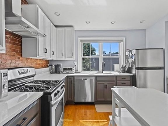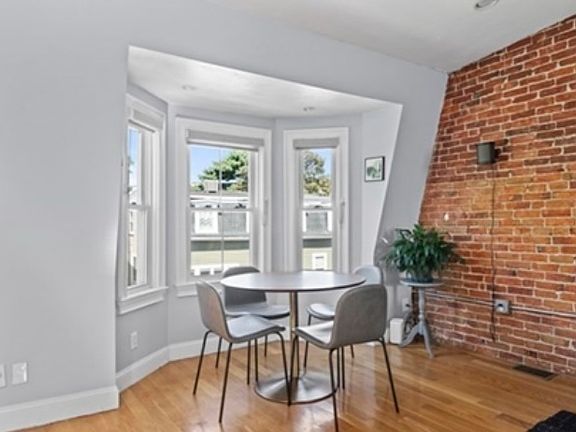 Stunning Eastside Penthouse Duplex on the second and third floor of a classic South Boston Rowhouse with private Roof Deck! Main living level features a sunny, open living concept with high ceilings, bay window, hardwood floors, exposed brick and landing flowing seamlessly to your private full staircase leading to private roof deck with city and water views. Large chef's kitchen has stainless appliances, gas cooking, and new quartz countertops. The first level features two large, equal bedrooms, one with bay window and alcove, both with exposed brick accents, a full bath and a landing off of the master. A/C, Mini-Split and Laundry in Unit. Prime Eastside location near M Street Beach and Broadway shops and restaurants. Flexible lease terms, pets negotiable and can be presented vacant, partially furnished or fully furnished. Unit is available for short term lease though lease end date is flexible with no option to renew.