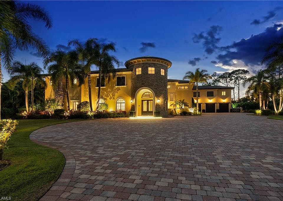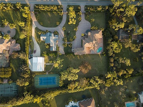 A truly gracious triple gated country estate situated in the heart of Naples only minutes to great restaurants, shops and the beach. This french inspired 2-story family home is encompassed by 3.29 acres of gloriously manicured lawns, hedgerows and exotic trees, allowing for total privacy from all 4 sides of the property. The house is filled with surprise features with automated blackout shades in the Master suite, temperature controlled dual wine rooms, a 12-seat home theatre, a gallery library, chef's kitchen with thermador and sub-zero appliances, a walk in pantry, whole house generator, reverse osmosis system, tankless hot water heaters, interior and exterior smart security system, tennis court with basketball hop, pool, spa and in addition to the 3-car attached garage, is a vast workshop with 14x14 and 16x10 doors, storage loft, built in cabinets, perfect for storing a Car collection, RV or boats. Need extra room for extended family to stay? The partially renovated guest house adjacent to the main house is the perfect solution! The main house sits on 1.59 acres and the guest house is on 1.75 acres the parcels could be subdivided to create two distinct Estates. Come take a look!