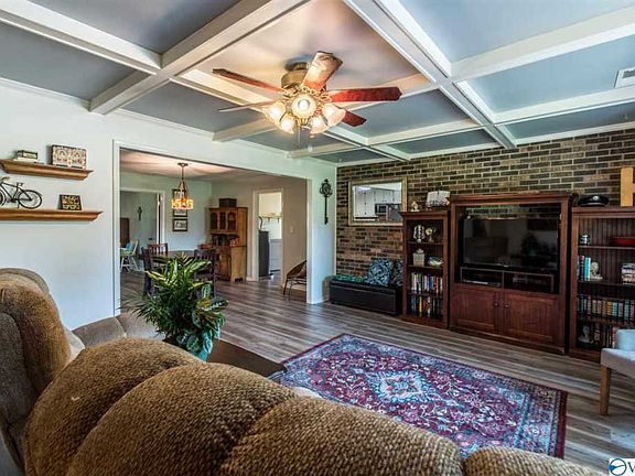 Gorgeous private country living with 1 acre of land. Located just 10 minutes from Hampton Cove, and a short 30 minute drive to Lake Guntersville! Throughout the home you will see brand new flooring, fresh paint, NEW windows, and many other wonderful upgrades to give this home such charm! Custom coffered ceilings in the Living Room and Master Bedroom offers a cozy feel, along with a timeless architectural design. The Bonus Room just off the Kitchen could flex into a 5th Bedroom, or be a wonderful Office with direct access to the large screened in Back Patio! Detached 1 Car Garage with additional storage.